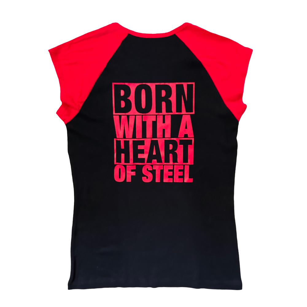 Introducing the MANOWAR Ladies T-Shirt "Born With A Heart Of Steel," a symbol of unwavering strength and passion for heavy metal. This shirt features powerful artwork that embodies the band's fierce spirit and dedication to their craft. Crafted with premium materials, it offers both comfort and durability, making it a must-have for any fan looking to embrace the indomitable power of true metal. Let your love for MANOWAR shine through with this empowering and iconic Ladies T-Shirt.