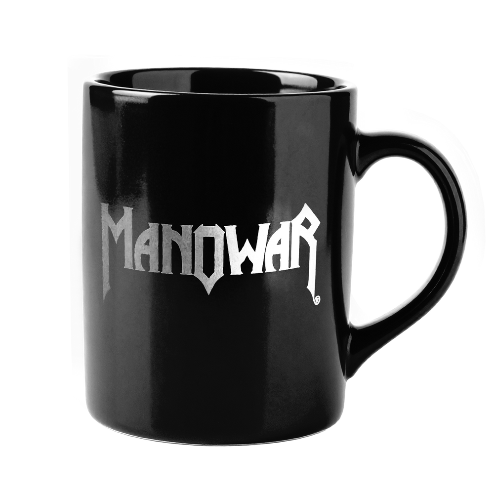 This official MANOWAR mug features the classic logo on one side and the bold motto “STAND AND FIGHT – LIVE BY YOUR HEART” on the other, with the iconic hammer emblem.