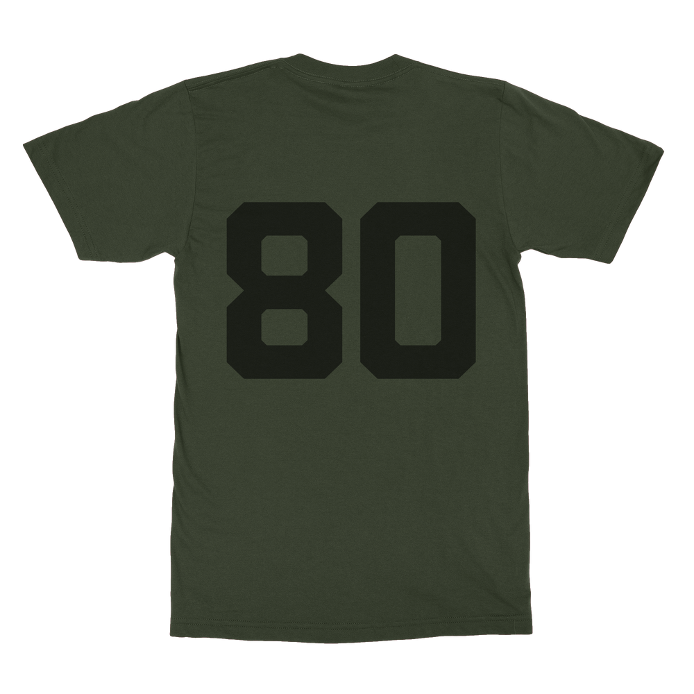 MANOWAR College Design T-Shirt 1980 in a vibrant military green, featuring the classic band logo. This shirt pays homage to the band's rich legacy, blending comfort and vintage style effortlessly. Crafted with premium materials, it ensures both comfort and durability, making it an essential addition to any dedicated fan's wardrobe. Let your love for MANOWAR shine through with this iconic and nostalgic T-shirt design.