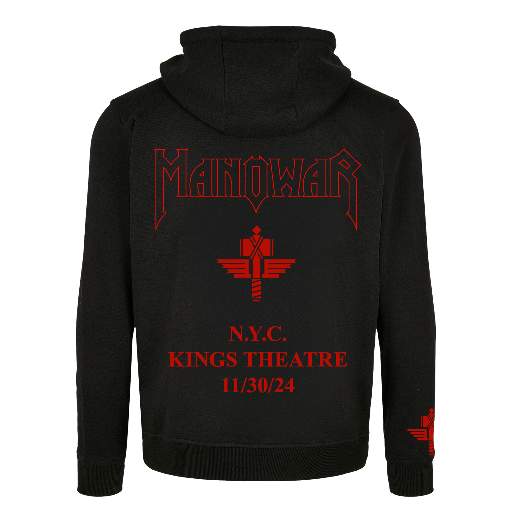 Featuring the red MANOWAR logo, the iconic hammer, and the New York city/date stamp, these hoodies carry the spirit of that unique night in N.Y.C.